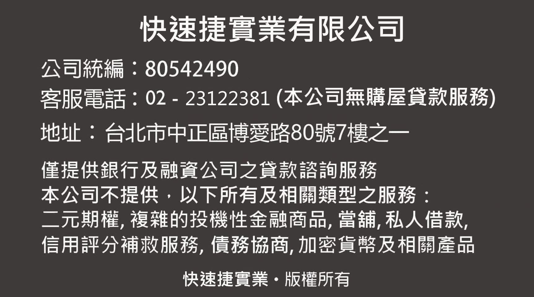 最終審核結果,以銀行告知為準,所有流程快速捷實業皆有義務告知。